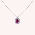 The Iris Sapphire Necklace celebrates timeless elegance, combining the classic allure of a refined design with the brilliance of precious gemstones. This jewel, with its contoured princess-style silhouette, features a magnificent 6x4 mm natural ruby that captures attention with its deep color. A pavé of approximately 0.17 ct brilliant-cut natural diamonds, G color and VS clarity, illuminates its contour, creating a vibrant and elegant contrast of colors. Crafted in 18KT gold, this choker is the perfect accessory for any occasion, from everyday wear to the most special evenings. Available with natural stone and heat-diffused natural stone, in white, yellow, or rose gold.