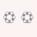The Cora earrings are an expression of grace and brilliance. Their geometric hexagonal design is embellished with a pavé of approximately 0.13 ct brilliant-cut natural diamonds, G color and VS clarity, set along the vertices, enhancing their sparkle. Crafted from 18kt gold, these earrings are a versatile and refined accessory that enhances the face with their timeless brilliance. Available in white, yellow, or rose gold.